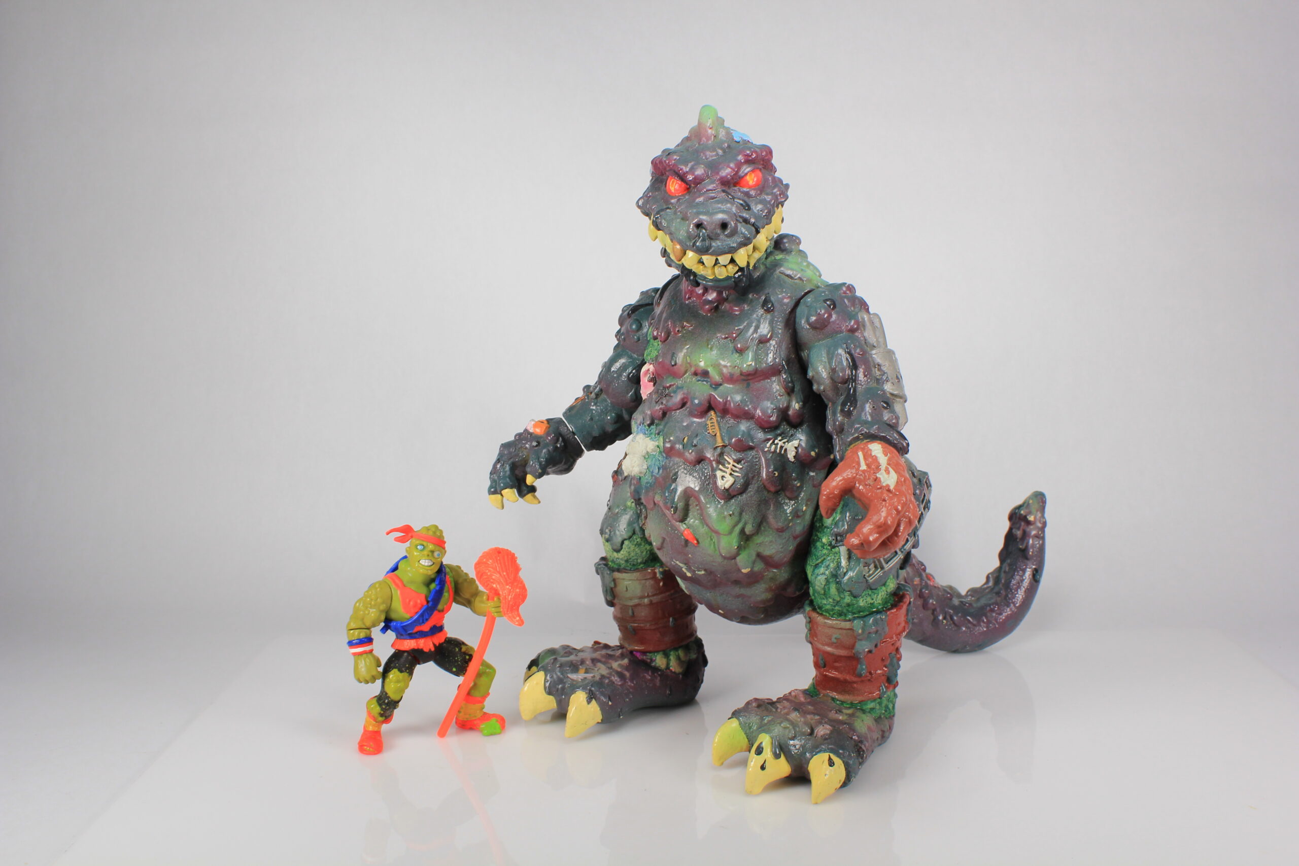 Whether planned or serendipitous, Playmates turned to the same studios to produce the action figure sculptures for Toxie they had already used for TMNT — Varner Studios and Anaglyph Studios.